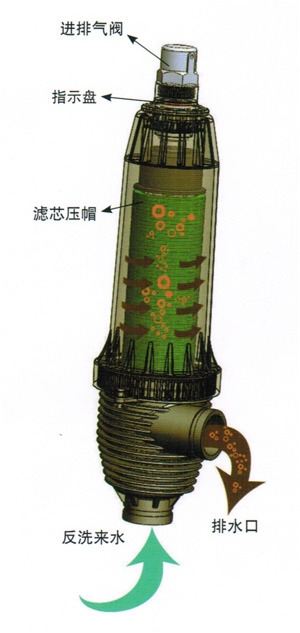 反洗时,上部的自动进排气阀会自动打开,空气可以进入腔体内,有助于提高喷射清洗效果。
